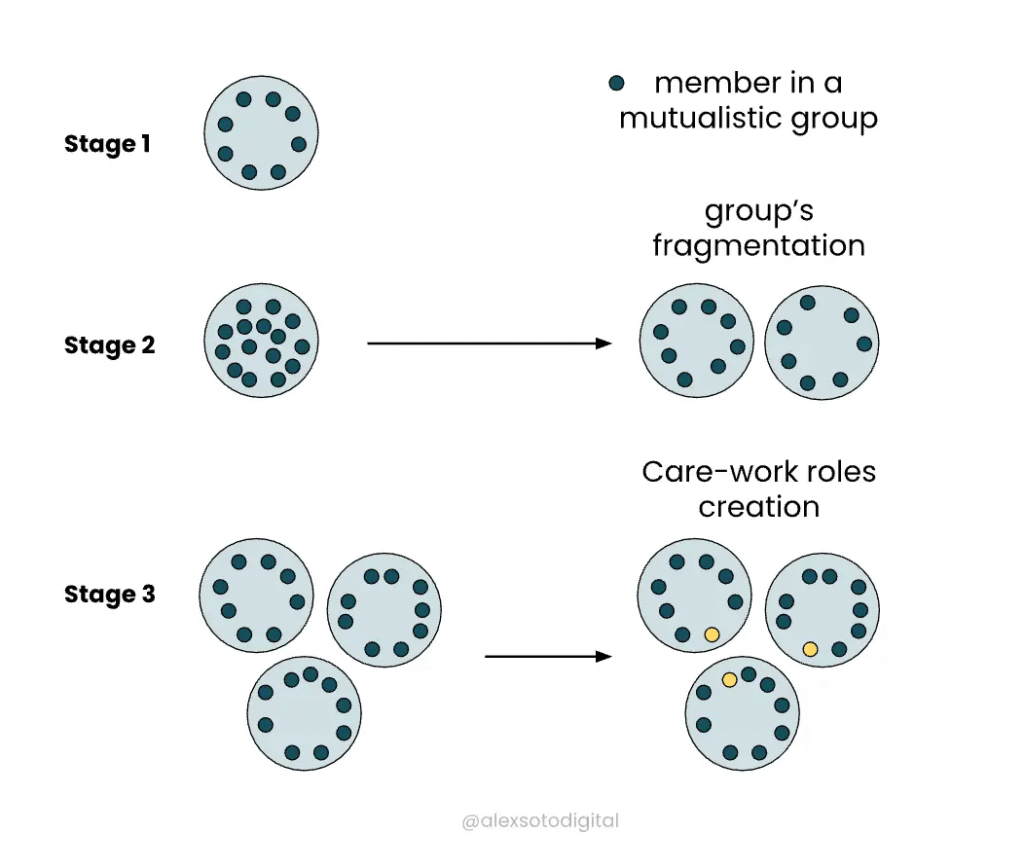 Well, first of all, in this mutualistic model the ultimate goal of the organization is not profit, but rather the benefit of the people involved. Therefore, there is less incentive to initiate such a coordination effort. Generally speaking, it requires social will for something like this to work. And yet, it seems that this is an idea whose time has come, thanks to the new coordination tools that are being built on the web3.